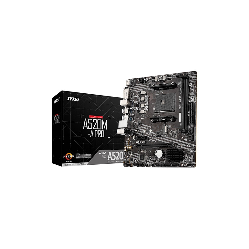 La MSI A520M-A PRO è una scheda madre micro ATX progettata per processori AMD Ryzen su socket AM4. Offre stabilità, affidabilità e tutte le funzionalità essenziali per realizzare configurazioni desktop efficienti, ideali per ufficio, casa e gaming entry-level.