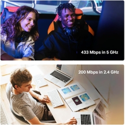 Adattatore Wi-Fi USB in formato nano, ideale per aggiungere o ripristinare la connettività wireless su PC e notebook in modo rapido e con ingombro minimo. Supporta Wi-Fi dual band con prestazioni fino a 433 Mbps in 5 GHz e 200 Mbps in 2,4 GHz, utile per migliorare stabilità e velocità rispetto ai vecchi adattatori solo 2,4 GHz.